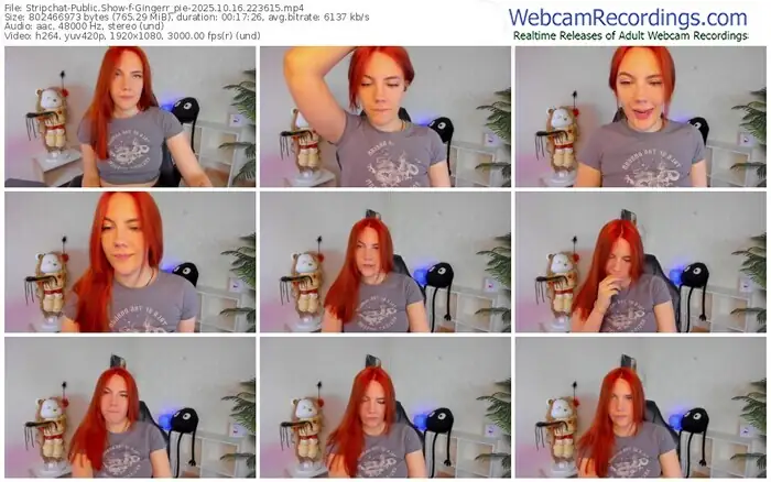 There are a total of 9 recordings (4 hours) of Gingerr_pie from Stripchat and Chaturbate available below.