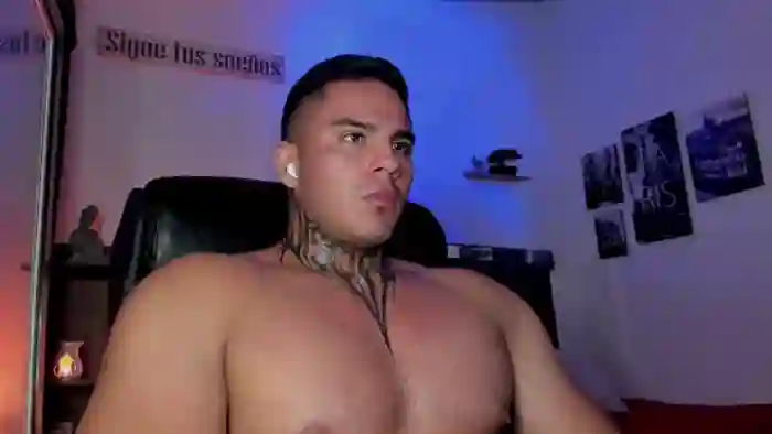 His birthday is May 3rd 1999 making him 26 years old, and the average age of models on Flirt4Free is 25—making him one of the older models. His height is 179cm, and his weight is 82kg. He identifies his ethnicity as hispanic. He has a hairy pubic hair, muscular body with black eyes and average black hair.His body art includes piercings, tattoo(s).
