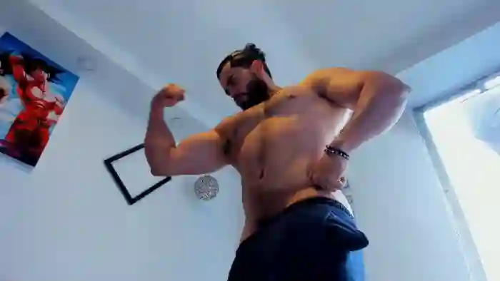 His birthday is October 20th 1994 making him 31 years old, and the average age of models on Flirt4Free is 25—making him one of the older models. His height is 175cm, and his weight is 100kg. He identifies his ethnicity as hispanic. He has a trimmed pubic hair, muscular body with brown eyes and short brown hair.