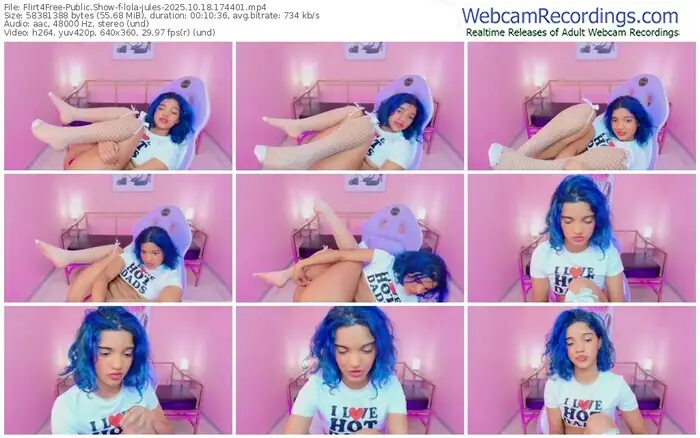 There are a total of 300 recordings (110 hours) of lola-jules from Flirt4Free available below.