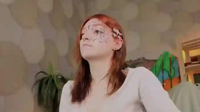 Her birthday is September 26th 2006 making her 19 years old, and the average age of models on Flirt4Free is 25—making her one of the younger models. Her height is 167cm, and her weight is 53kg. She identifies her ethnicity as caucasian. She has a shaved pubic hair, and a cup breasts on a slim body with brown eyes and shoulder red hair.Her body art includes piercings.