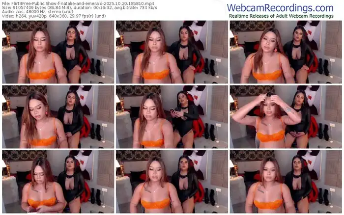 There are a total of 8 recordings (4 hours) of natalie-and-emerald from Flirt4Free available below.