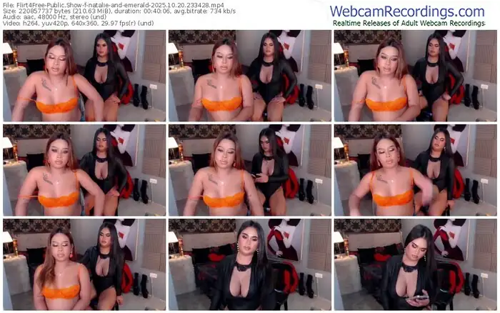 There are a total of 8 recordings (4 hours) of natalie-and-emerald from Flirt4Free available below.