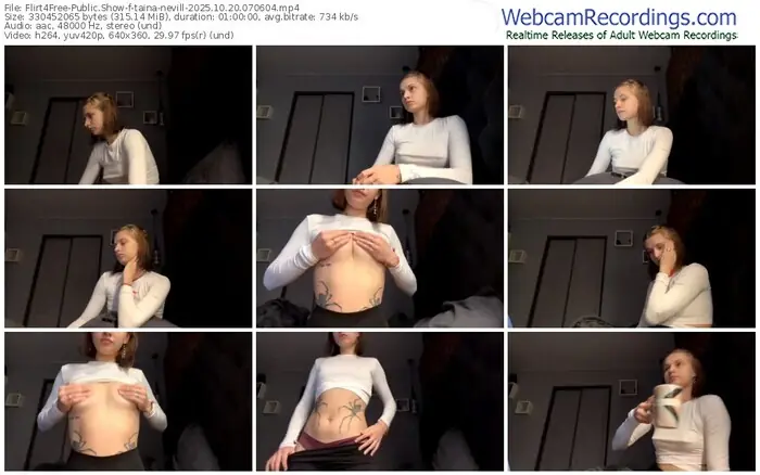 There are a total of 45 recordings (34 hours) of taina-nevill from Flirt4Free available below.