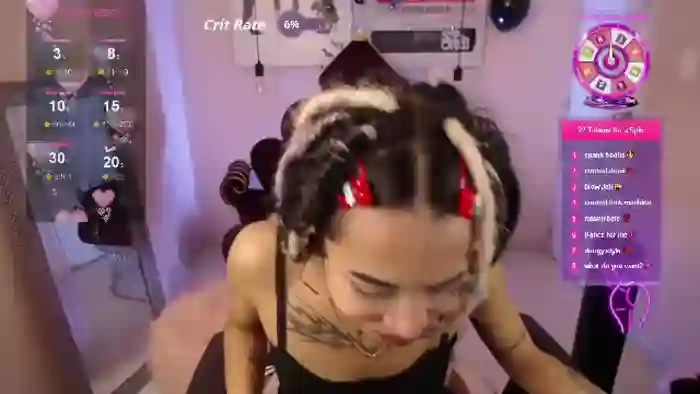 Her birthday is January 26th 2004 making her 21 years old, and the average age of models on Flirt4Free is 25—making her one of the younger models. Her height is 155cm, and her weight is 45kg. She identifies her ethnicity as asian. She has a natural pubic hair, and b cup breasts on a slim body with brown eyes and long black hair.Her body art includes piercings, tattoo(s).