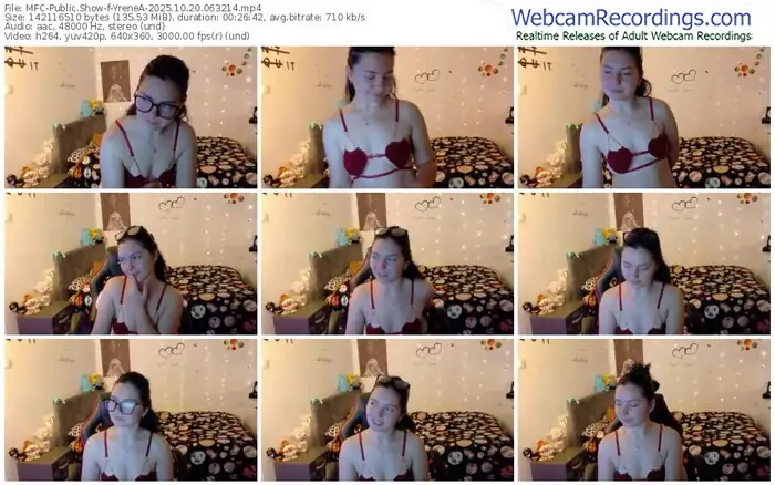 There are a total of 1,617 recordings (783 hours) of YreneA from MyFreeCams available below.