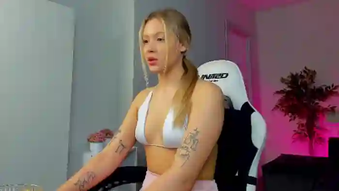 Her birthday is October 27th 2006 making her 19 years old, and the average age of models on Flirt4Free is 25—making her one of the younger models. Her height is 165cm, and her weight is 55kg. She identifies her ethnicity as caucasian. She has a shaved pubic hair, and b cup breasts on a average body with brown eyes and long blonde hair.Her body art includes tattoo(s).