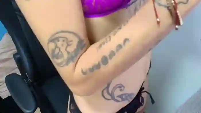 Her birthday is August 21st 1994 making her 31 years old, and the average age of models on Flirt4Free is 25—making her one of the older models. Her height is 165cm, and her weight is 46kg. She identifies her ethnicity as hispanic. She has a shaved pubic hair, and a cup breasts on a curvy body with black eyes and shoulder red hair.Her body art includes piercings, tattoo(s).