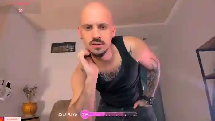 His birthday is February 13th 1995 making him 30 years old, and the average age of models on Flirt4Free is 25—making him one of the older models. His height is 184cm, and his weight is 78kg. He identifies his ethnicity as caucasian. He has a shaved pubic hair, muscular body with brown eyes and bald brown hair.His body art includes tattoo(s).