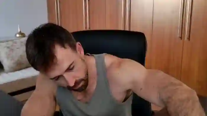 His birthday is June 30th 1992 making him 33 years old, and the average age of models on Flirt4Free is 25—making him one of the older models. His height is 187cm, and his weight is 89kg. He identifies his ethnicity as caucasian. He has a trimmed pubic hair, muscular body with blue eyes and short brown hair.