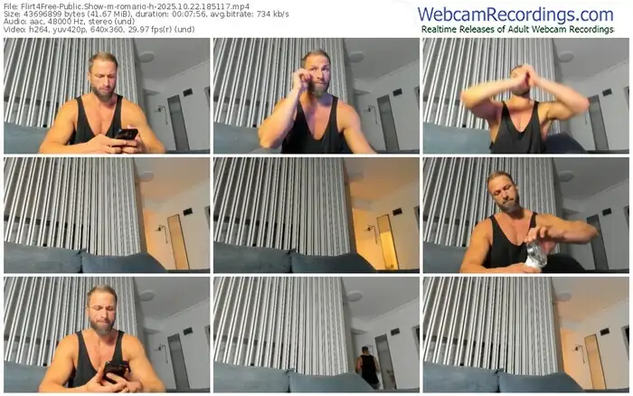 There are a total of 804 recordings (319 hours) of romario-h from Flirt4Free available below.