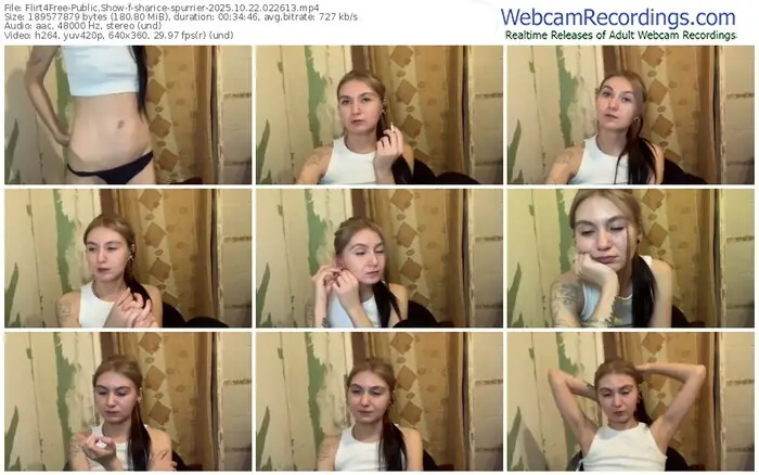 There are a total of 137 recordings (96 hours) of sharice-spurrier from Flirt4Free available below.