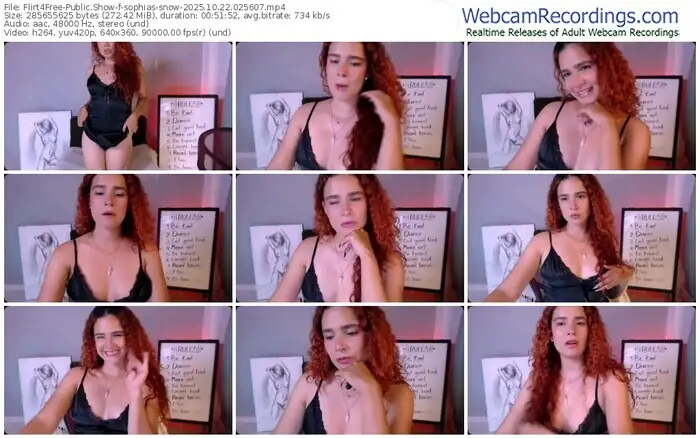 There are a total of 320 recordings (189 hours) of sophias-snow from Flirt4Free available below.