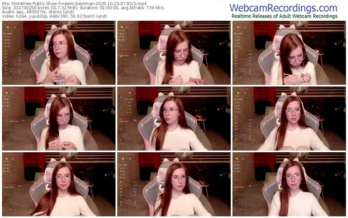 There are a total of 255 recordings (165 hours) of naomi-beytman from Flirt4Free available below.
