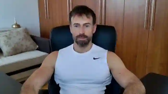 His birthday is June 30th 1992 making him 33 years old, and the average age of models on Flirt4Free is 25—making him one of the older models. His height is 187cm, and his weight is 89kg. He identifies his ethnicity as caucasian. He has a trimmed pubic hair, muscular body with blue eyes and short brown hair.