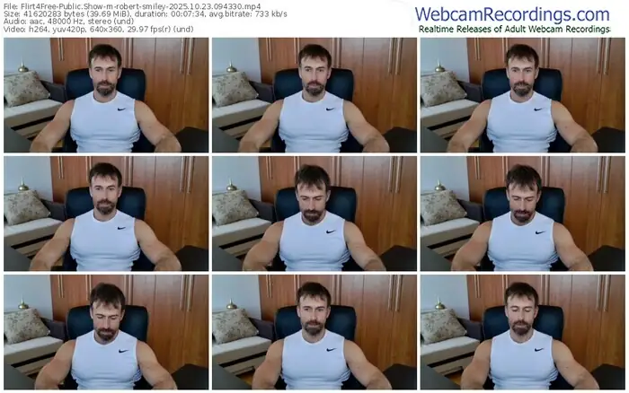 There are a total of 1,985 recordings (910 hours) of robert-smiley from Flirt4Free available below.
