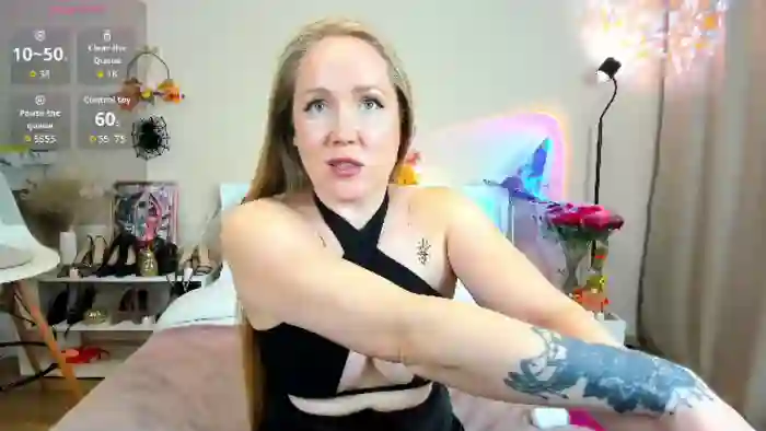 Her birthday is March 11th 1989 making her 36 years old, and the average age of models on Flirt4Free is 25—making her one of the older models. Her height is 167cm, and her weight is 58kg. She identifies her ethnicity as caucasian. She has a trimmed pubic hair, and b cup breasts on a average body with green eyes and very long blonde hair.Her body art includes piercings, tattoo(s).