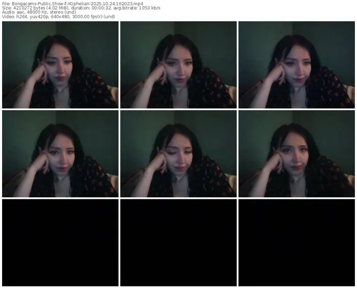 There are a total of 8 recordings (47 minutes) of XOpheliaX from Bongacams available below.