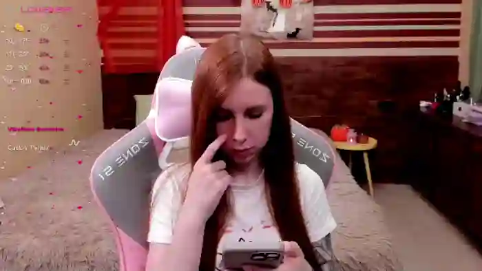 Her birthday is March 27th 2003 making her 22 years old, and the average age of models on Flirt4Free is 25—making her one of the younger models. Her height is 162cm, and her weight is 48kg. She identifies her ethnicity as caucasian. She has a shaved pubic hair, and c cup breasts on a slim body with blue eyes and long red hair.Her body art includes piercings, tattoo(s), fake breasts.