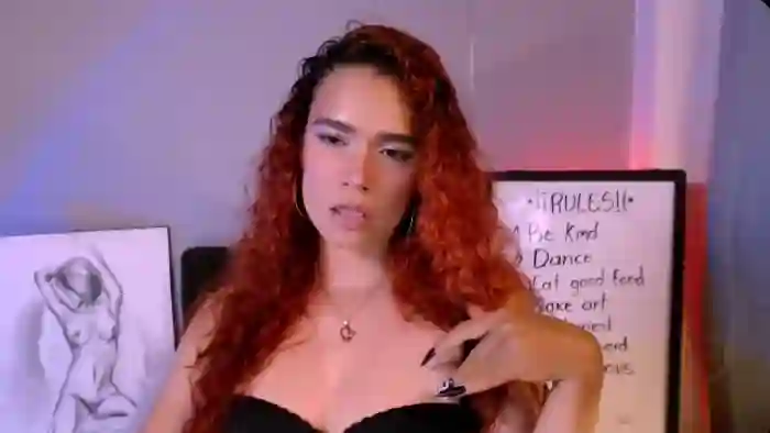Her birthday is June 13th 1996 making her 29 years old, and the average age of models on Flirt4Free is 25—making her one of the older models. Her height is 165cm, and her weight is 62kg. She identifies her ethnicity as hispanic. She has a hairy pubic hair, and c cup breasts on a average body with brown eyes and long red hair.Her body art includes tattoo(s).