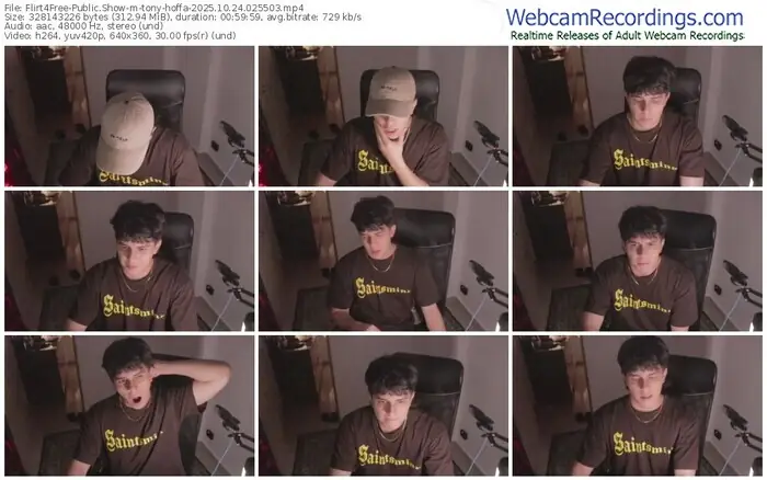 There are a total of 904 recordings (602 hours) of tony-hoffa from Flirt4Free available below.