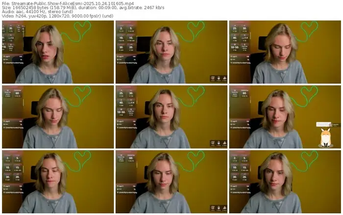 There are a total of 30 recordings (6 hours) of AliceEsmi from Streamate available below.