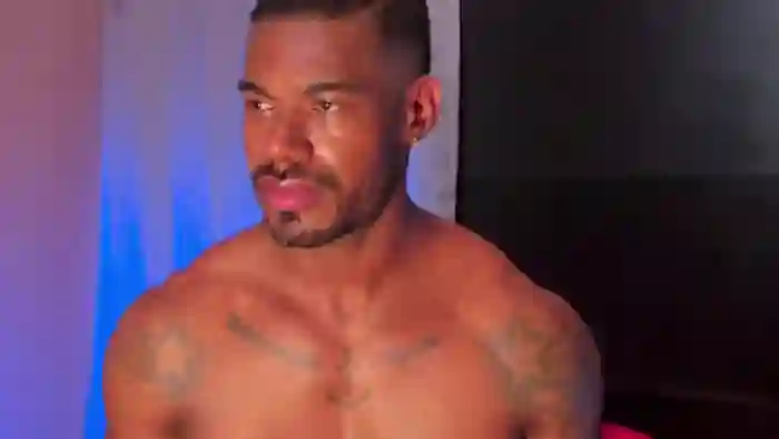 His birthday is October 25th 1998 making him 27 years old, and the average age of models on Flirt4Free is 25—making him one of the older models. His height is 180cm, and his weight is 85kg. He identifies his ethnicity as black. He has a trimmed pubic hair, muscular body with brown eyes and short black hair.His body art includes tattoo(s).