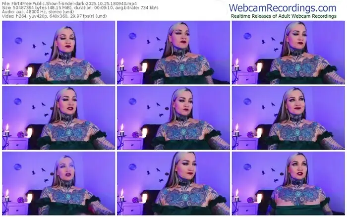 There are a total of 419 recordings (240 hours) of sindel-dark from Flirt4Free available below.