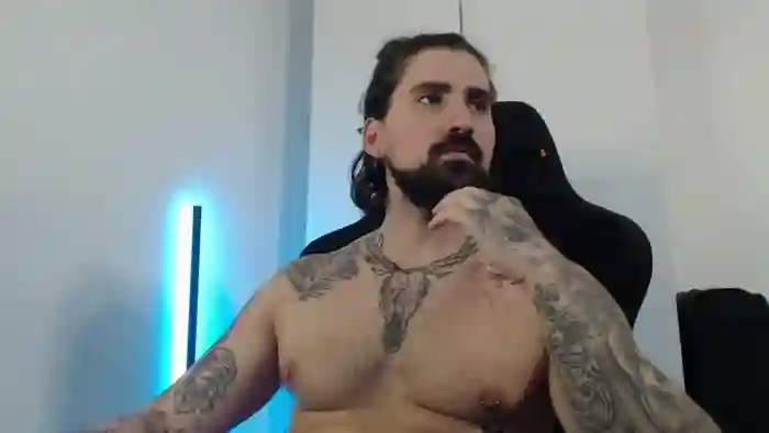 He is 29 years old, and the average age of models on Streamate is 30—making him one of the younger models. His height is 6'2, and his weight is 210 lbs. He identifies his ethnicity as european. He has a uncut big cock, 49 (124cm) chest hairy, body hair, hairy pubic hair on a muscular body with green eyes and black hair.His body art includes tattoos, piercings.