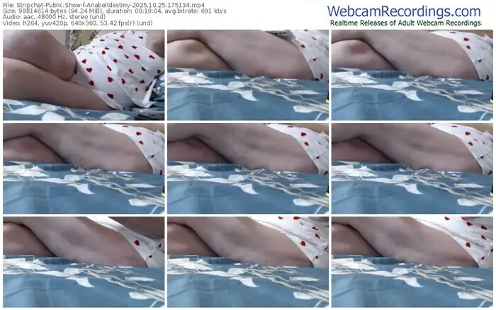 There are a total of 47 recordings (10 hours) of Anabelldestiny from Stripchat available below.