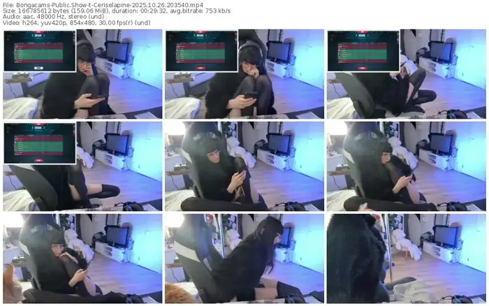 There are a total of 563 recordings (77 hours) of Ceriselapine from Bongacams, Stripchat and Cam4 available below.