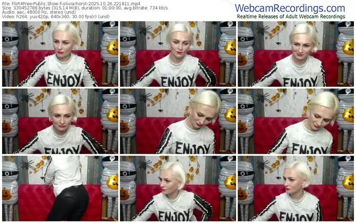 There are a total of 1,052 recordings (493 hours) of olivia-horst from Flirt4Free available below.