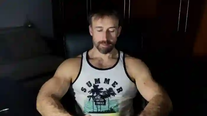 His birthday is June 30th 1992 making him 33 years old, and the average age of models on Flirt4Free is 25—making him one of the older models. His height is 187cm, and his weight is 89kg. He identifies his ethnicity as caucasian. He has a trimmed pubic hair, muscular body with blue eyes and short brown hair.