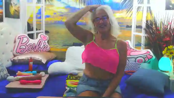 She is 54 years old, and the average age of models on Streamate is 30—making her one of the older models. Her height is 5'6, and her weight is 151 lbs. She identifies her ethnicity as white. She has a d cup size breasts, bald pubic hair on a curvaceous body with blue eyes and blond hair.Her body art includes tattoos.