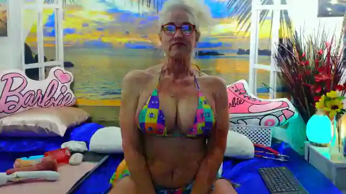 She is 54 years old, and the average age of models on Streamate is 30—making her one of the older models. Her height is 5'6, and her weight is 151 lbs. She identifies her ethnicity as white. She has a d cup size breasts, bald pubic hair on a curvaceous body with blue eyes and blond hair.Her body art includes tattoos.