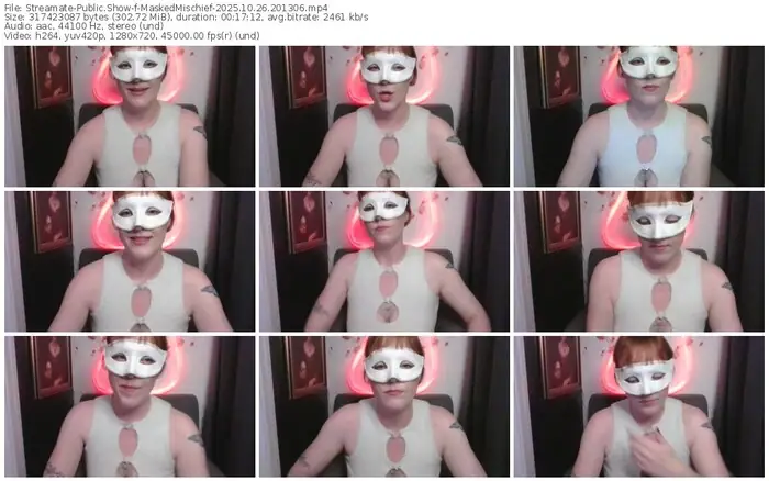 There are a total of 55 recordings (27 hours) of MaskedMischief from Streamate available below.