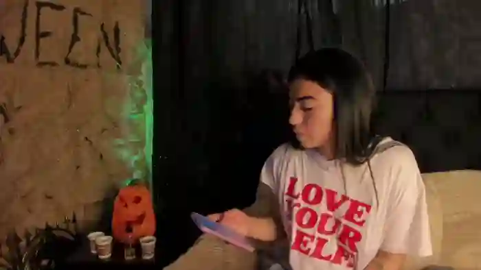 Her birthday is September 23rd 2004 making her 21 years old, and the average age of models on Flirt4Free is 25—making her one of the younger models. Her height is 165cm, and her weight is 50kg. She identifies her ethnicity as hispanic. She has a shaved pubic hair, and b cup breasts on a slim body with brown eyes and shoulder red hair.Her body art includes piercings, tattoo(s).