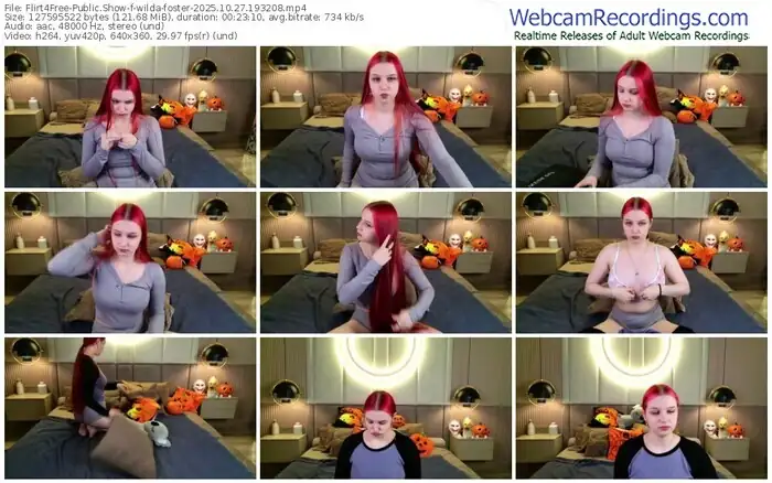 There are a total of 641 recordings (294 hours) of wilda-foster from Flirt4Free available below.