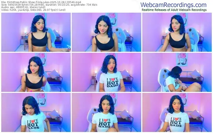 There are a total of 300 recordings (110 hours) of lola-jules from Flirt4Free available below.