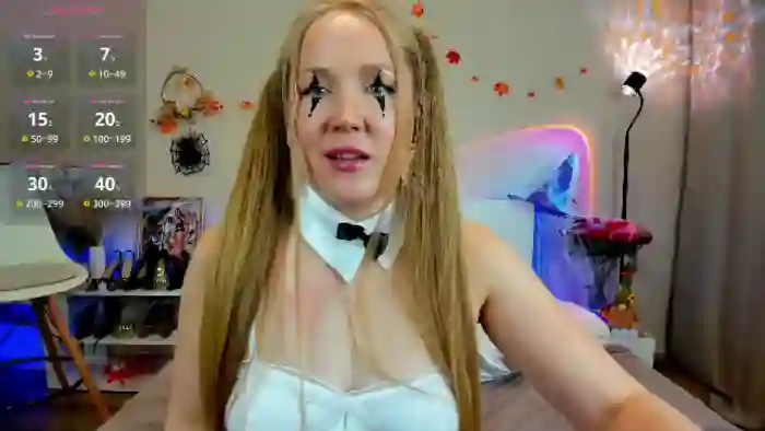 Her birthday is March 11th 1989 making her 36 years old, and the average age of models on Flirt4Free is 25—making her one of the older models. Her height is 167cm, and her weight is 58kg. She identifies her ethnicity as caucasian. She has a trimmed pubic hair, and b cup breasts on a average body with green eyes and very long blonde hair.Her body art includes piercings, tattoo(s).
