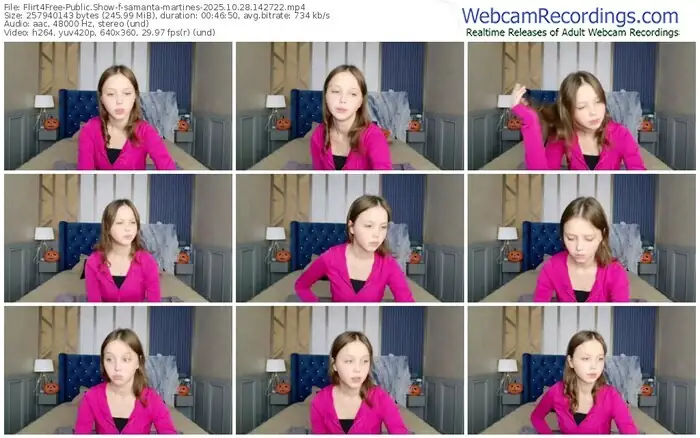 There are a total of 314 recordings (141 hours) of samanta-martines from Flirt4Free available below.