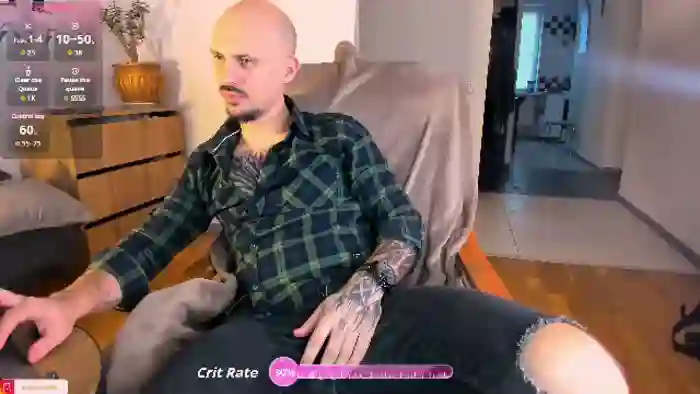 His birthday is February 13th 1995 making him 30 years old, and the average age of models on Flirt4Free is 25—making him one of the older models. His height is 184cm, and his weight is 78kg. He identifies his ethnicity as caucasian. He has a shaved pubic hair, muscular body with brown eyes and bald brown hair.His body art includes tattoo(s).