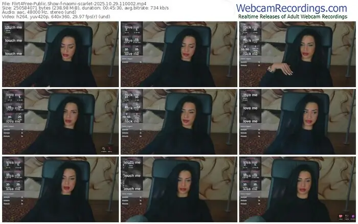 There are a total of 311 recordings (173 hours) of naomi-scarlet from Flirt4Free available below.