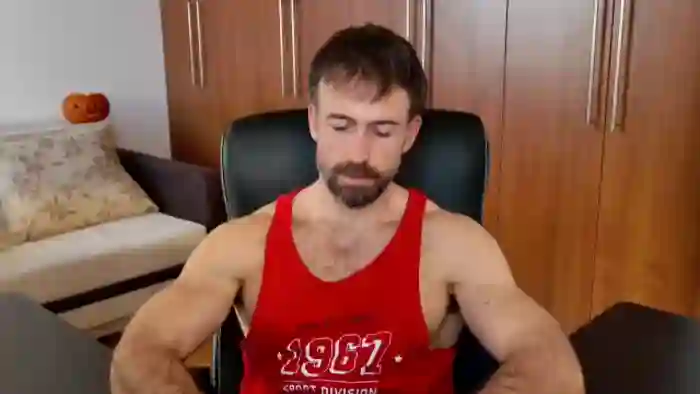 His birthday is June 30th 1992 making him 33 years old, and the average age of models on Flirt4Free is 25—making him one of the older models. His height is 187cm, and his weight is 89kg. He identifies his ethnicity as caucasian. He has a trimmed pubic hair, muscular body with blue eyes and short brown hair.
