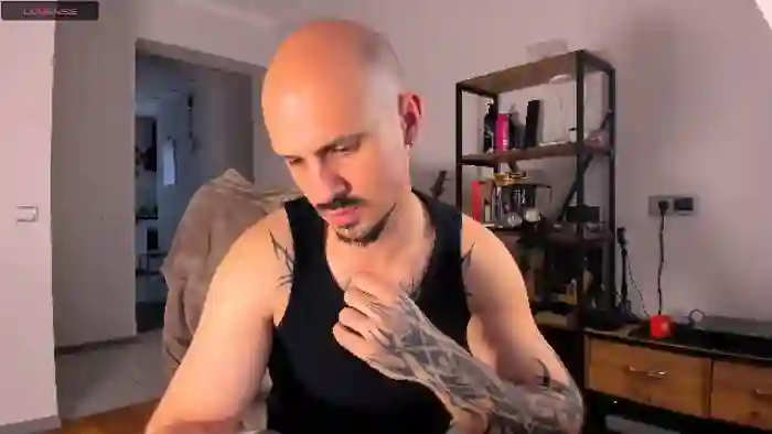 His birthday is February 13th 1995 making him 30 years old, and the average age of models on Flirt4Free is 25—making him one of the older models. His height is 184cm, and his weight is 78kg. He identifies his ethnicity as caucasian. He has a shaved pubic hair, muscular body with brown eyes and bald brown hair.His body art includes tattoo(s).