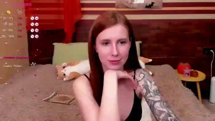 Her birthday is March 27th 2003 making her 22 years old, and the average age of models on Flirt4Free is 25—making her one of the younger models. Her height is 162cm, and her weight is 48kg. She identifies her ethnicity as caucasian. She has a shaved pubic hair, and c cup breasts on a slim body with blue eyes and long red hair.Her body art includes piercings, tattoo(s), fake breasts.