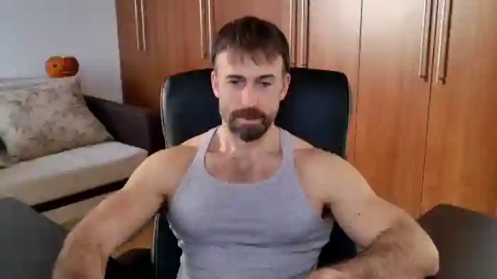 His birthday is June 30th 1992 making him 33 years old, and the average age of models on Flirt4Free is 25—making him one of the older models. His height is 187cm, and his weight is 89kg. He identifies his ethnicity as caucasian. He has a trimmed pubic hair, muscular body with blue eyes and short brown hair.