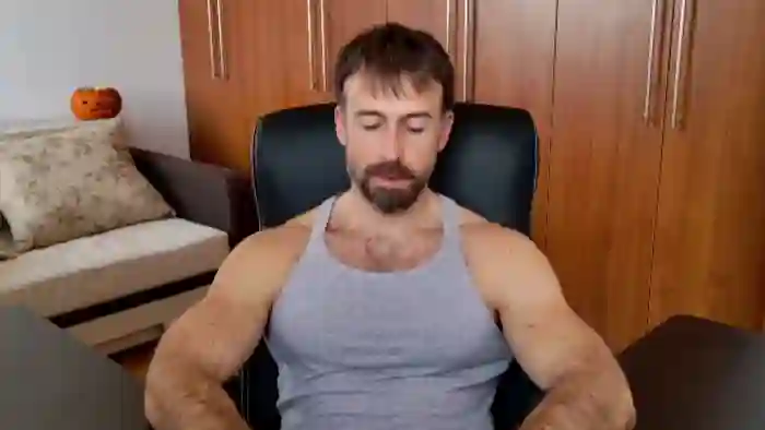 His birthday is June 30th 1992 making him 33 years old, and the average age of models on Flirt4Free is 25—making him one of the older models. His height is 187cm, and his weight is 89kg. He identifies his ethnicity as caucasian. He has a trimmed pubic hair, muscular body with blue eyes and short brown hair.
