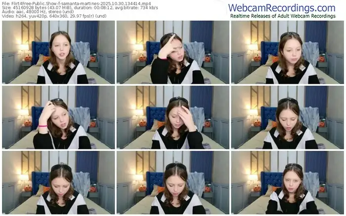 There are a total of 314 recordings (141 hours) of samanta-martines from Flirt4Free available below.