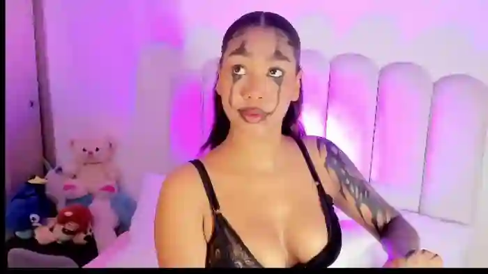 Her birthday is April 21st 2004 making her 21 years old, and the average age of models on Flirt4Free is 25—making her one of the younger models. Her height is 176cm, and her weight is 54kg. She identifies her ethnicity as mixed. She has a shaved pubic hair, and b cup breasts on a slim body with black eyes and average black hair.Her body art includes piercings, tattoo(s).